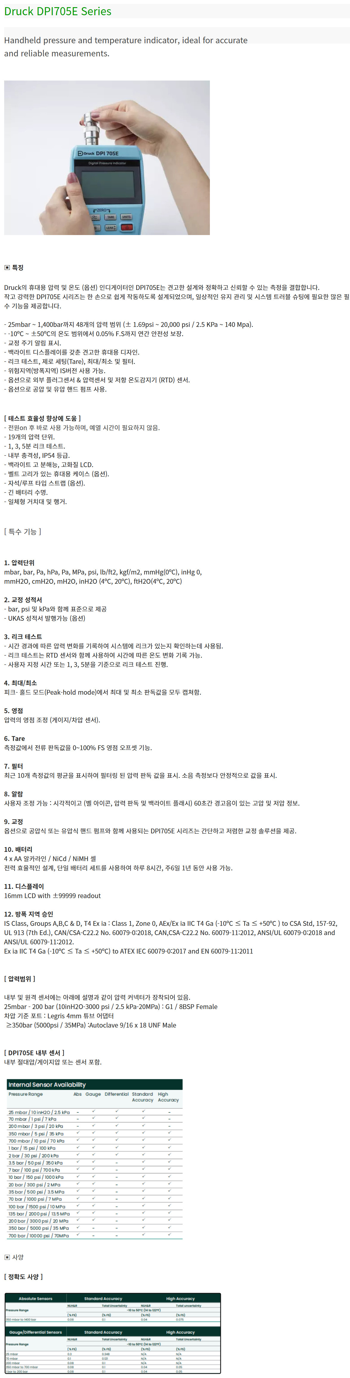 온도범위 : -10℃ ~ 50℃, 정확도 : 0.05 % FS