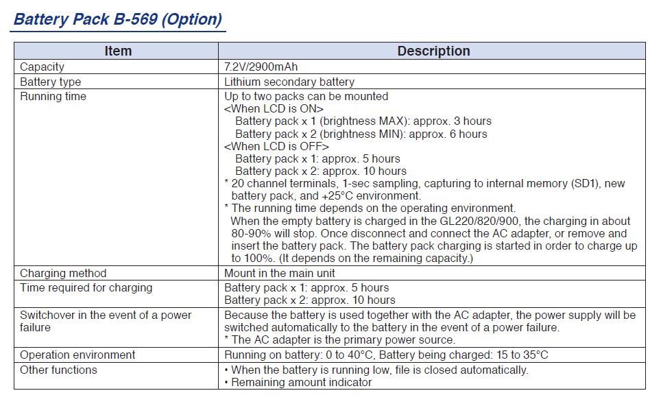 *기존 배터리팩인 B-517(단종)은 GL840 / GL240에서 사용할 수 없습니다.