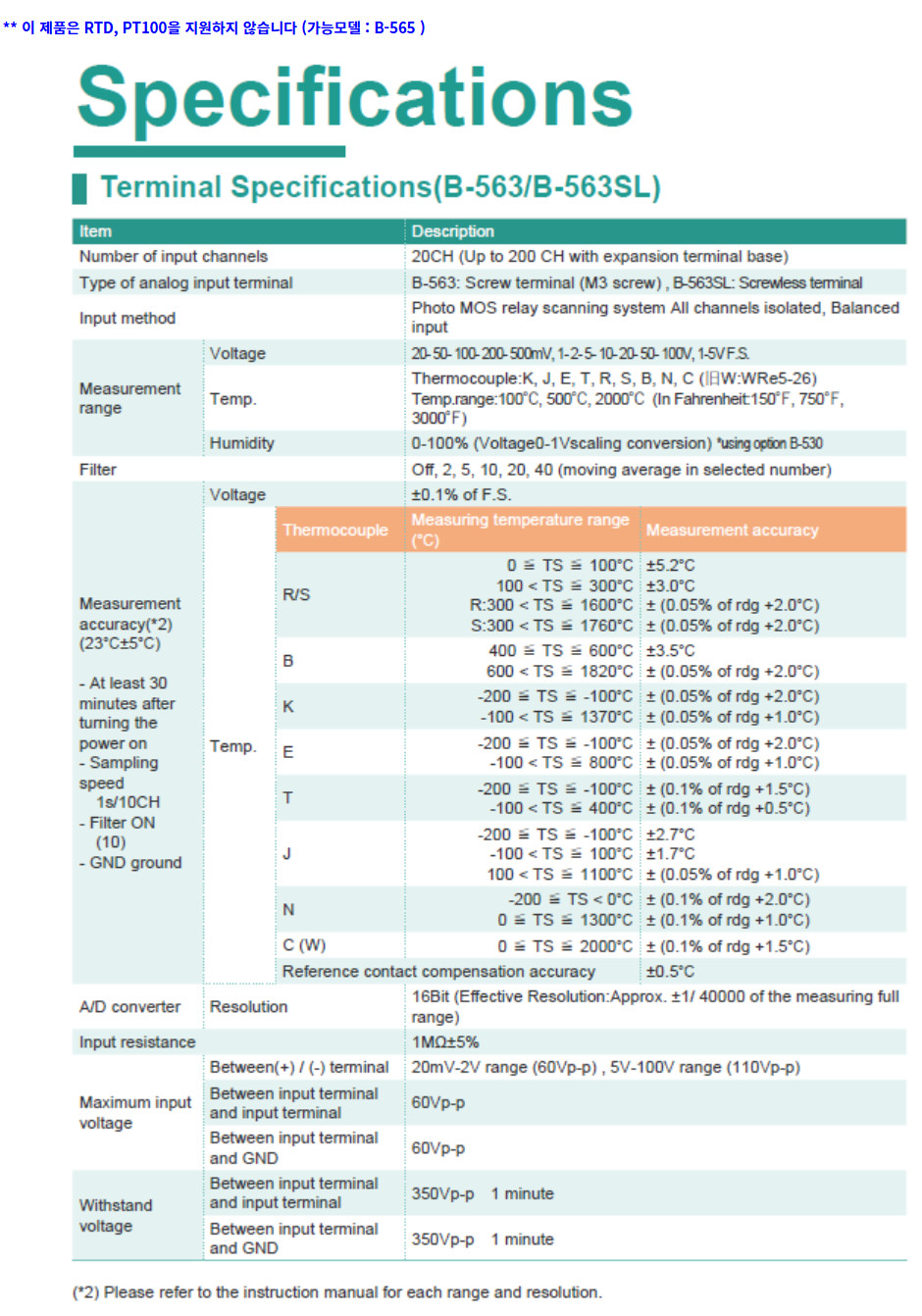RTD, PT100 지원 안됨, 입력케이블 내경 확인