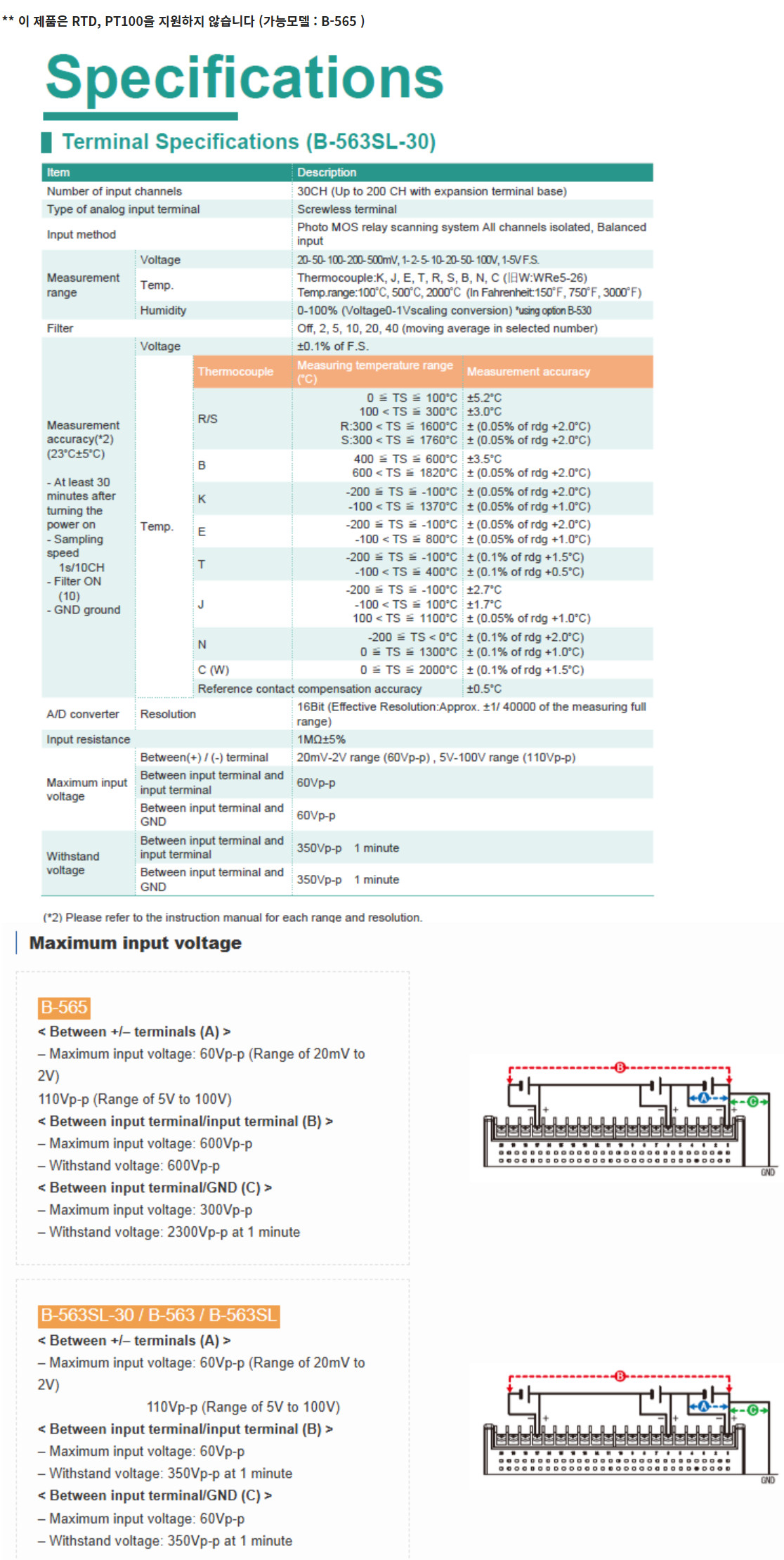 RTD, PT100 지원 안됨, 입력케이블 내경 확인