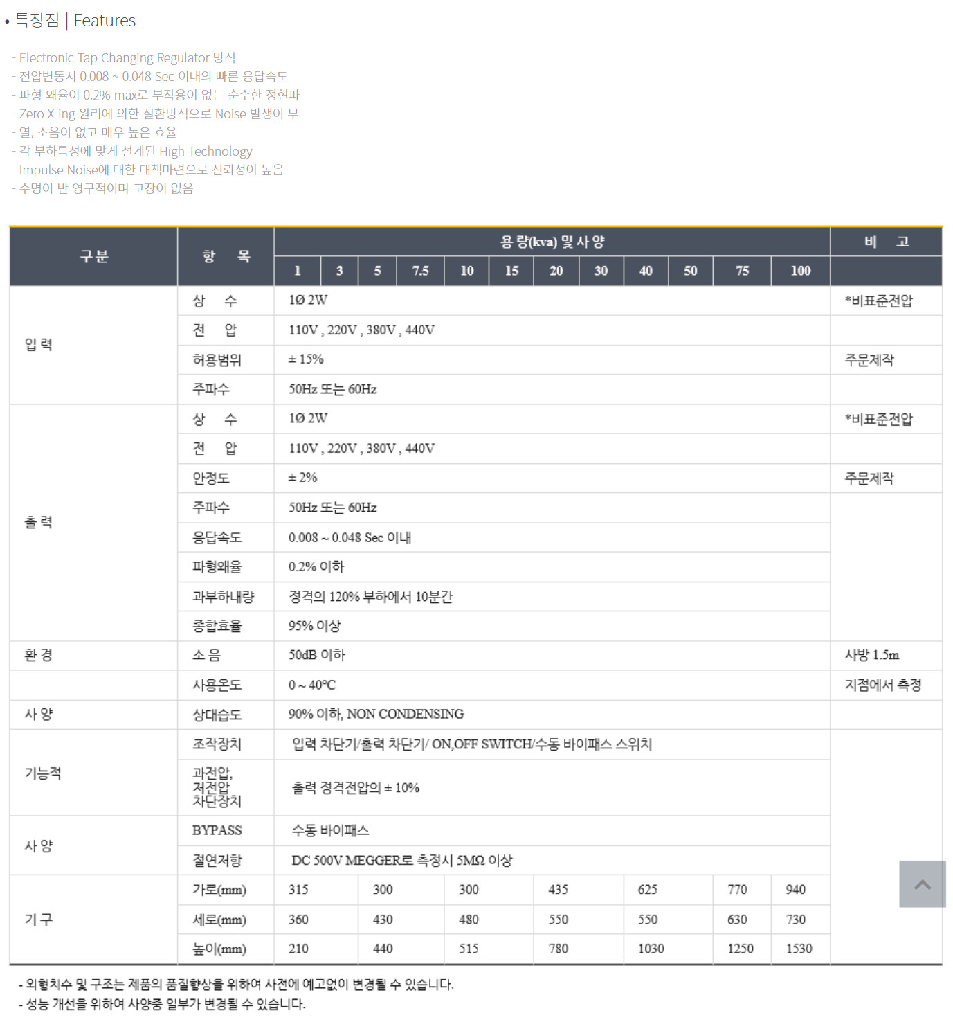 전압변동시 0.008 ~ 0.048 Sec 이내의 빠른 응답속도