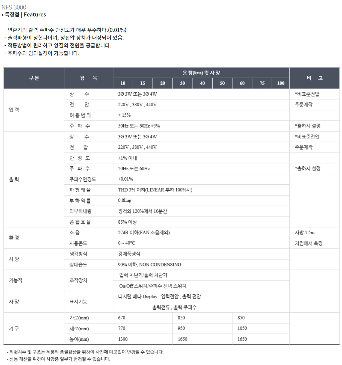 출력파형이 정현파이며, 정전압 장치가 내장