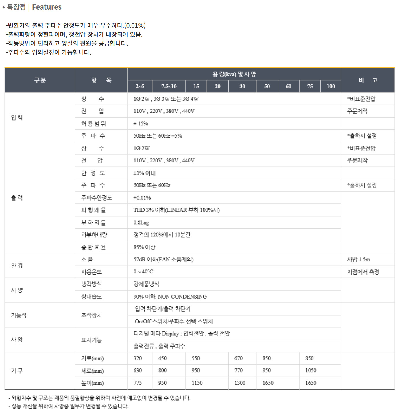 변환기의 출력 주파수 안정도가 매우 우수 .(0.01%)