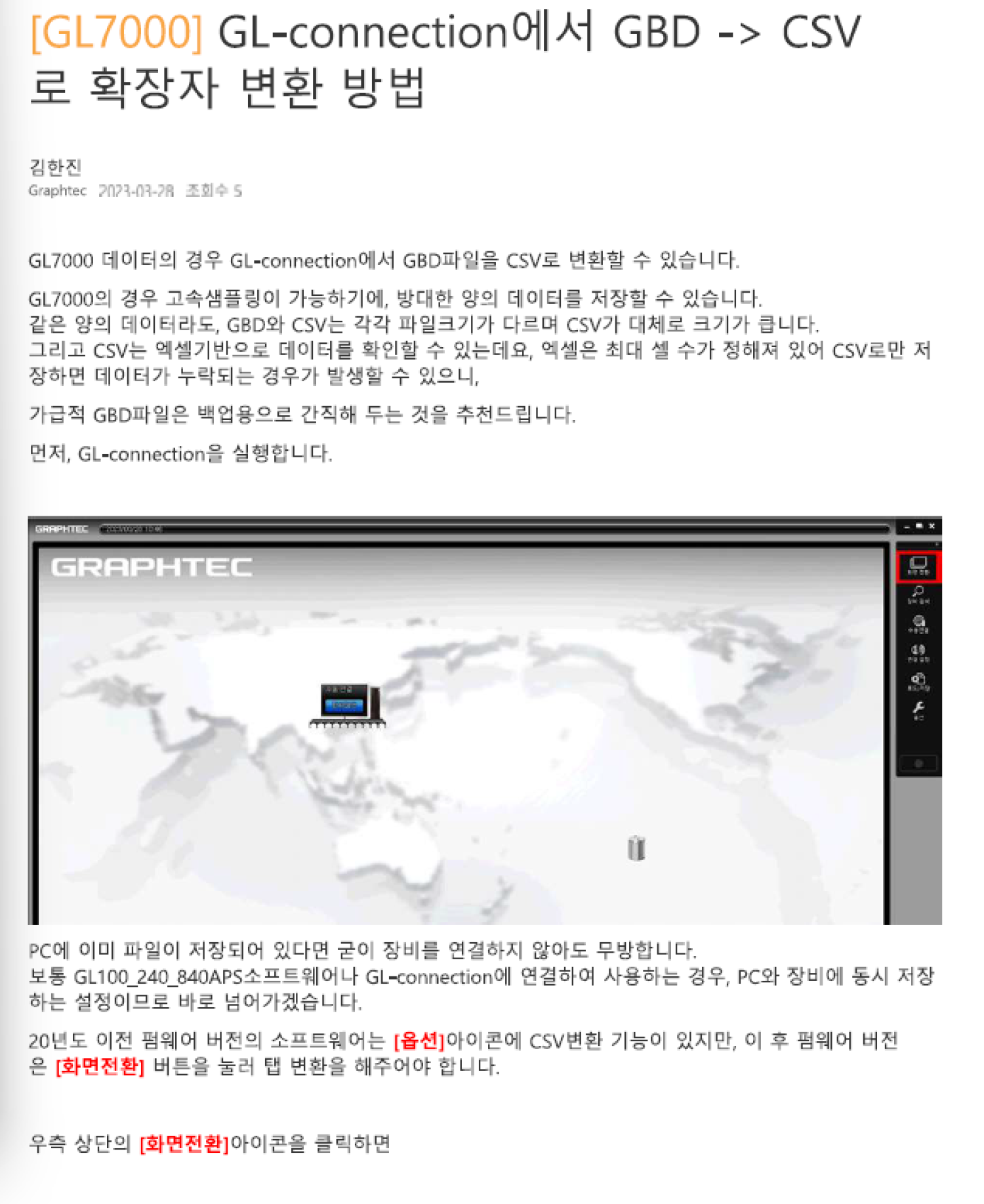 {GL7000] GL-Connection에서 GBD to CSV 확장자 변경방법입니다.