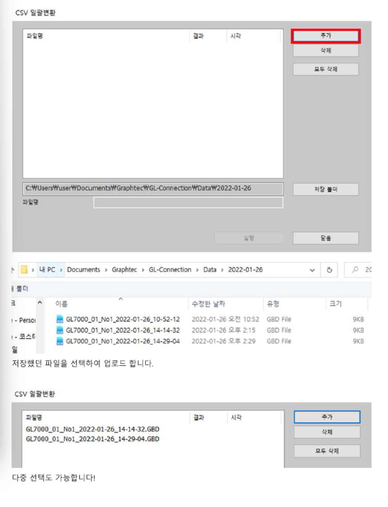 {GL7000] GL-Connection에서 GBD to CSV 확장자 변경방법