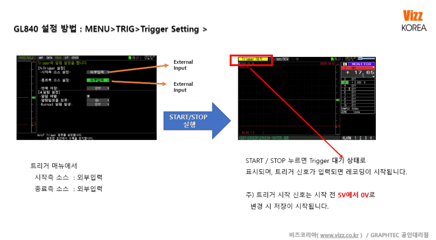 B-513 Data In//out cable 트리거 입력을 이용한 GL시리즈 데이터 저장 방법